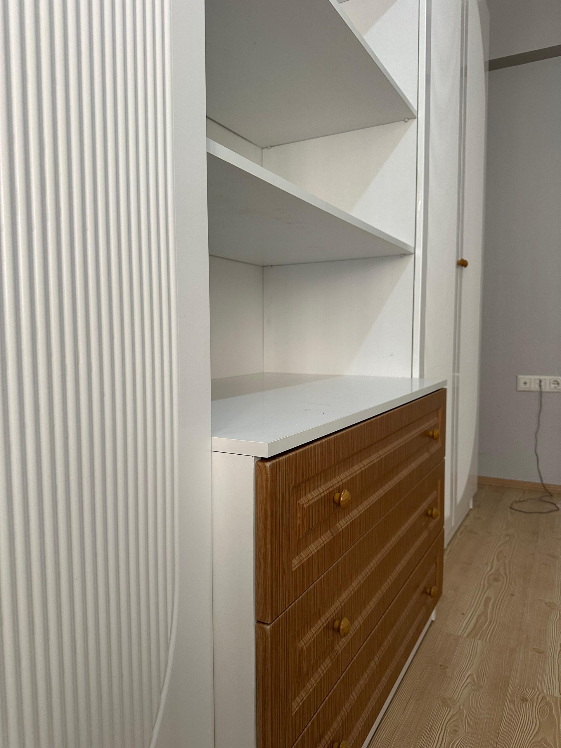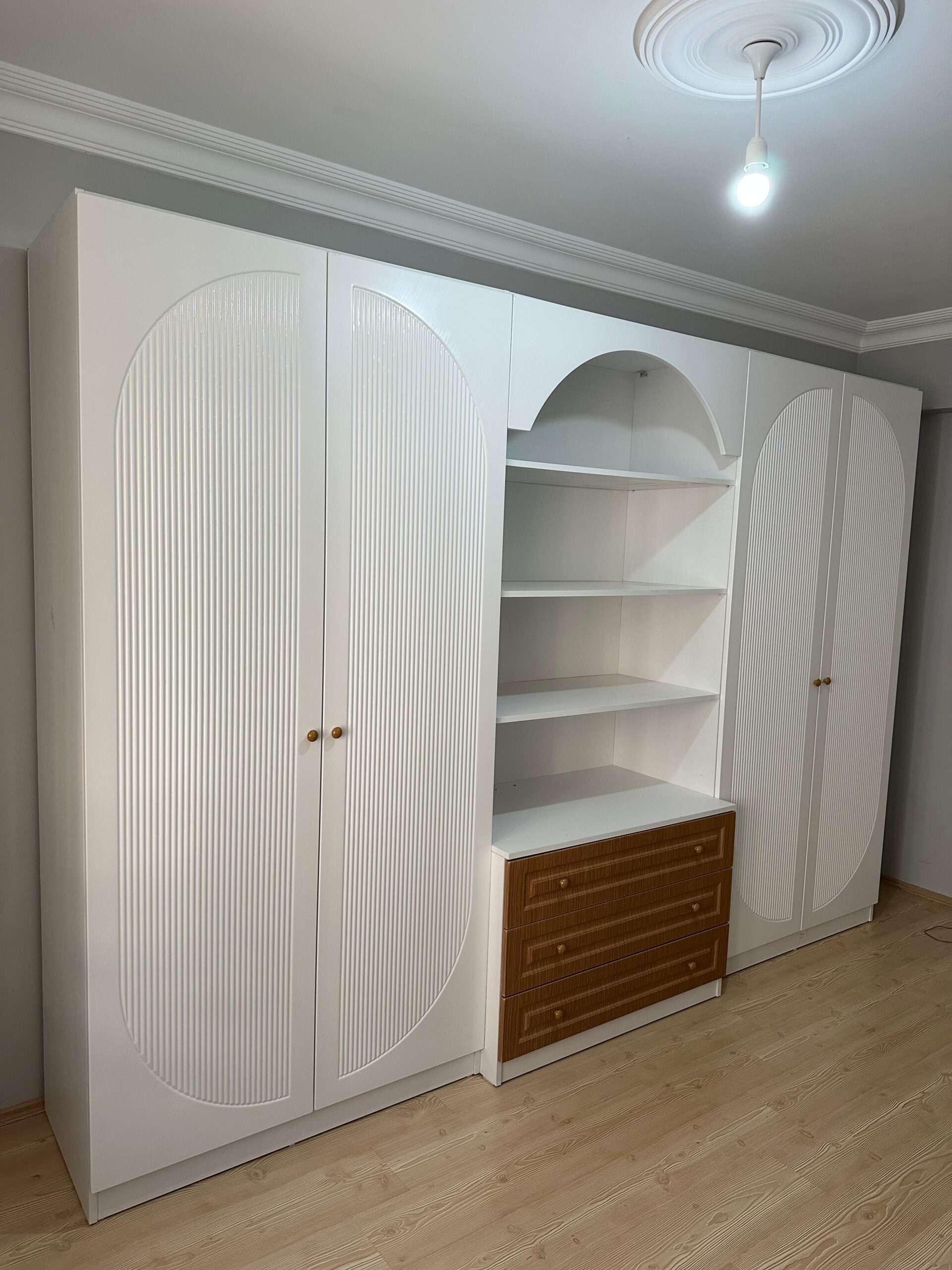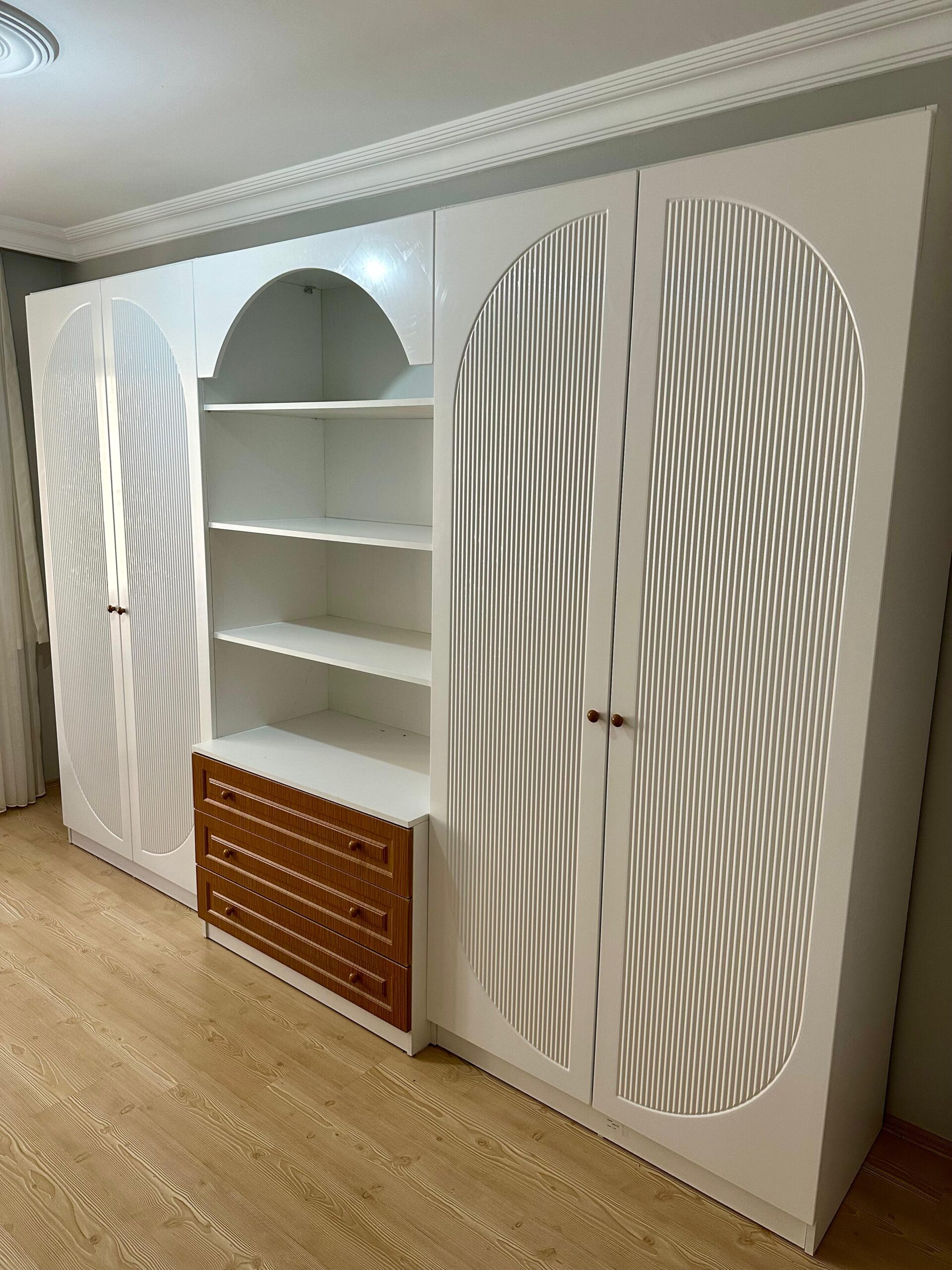 Özel ölçülerle tasarlanmış kapaklı gardırop modelimiz, şıklığı ve dayanıklılığı bir araya getiriyor. Pürüzsüz yüzeyi ve modern tasarımıyla odanıza zarif bir dokunuş katarken, geniş iç hacmi ile eşyalarınızı düzenli tutmanıza yardımcı oluyor. Kişisel tercihlerinize ve alanınıza mükemmel uyum sağlayacak bu özel tasarım gardırop, estetik ve işlevselliği bir arada sunuyor.